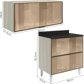 Modelo: Armario Aereo E Balcao Em Vidro 1P 2G 80cm MDF Kali Nicioli