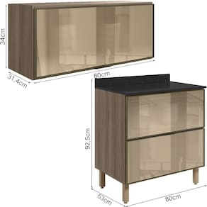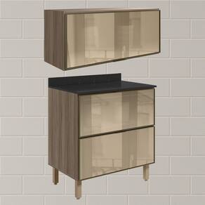 Modelo: Armario Aereo E Balcao Em Vidro 1P 2G 80cm MDF Kali Nicioli