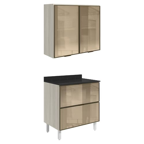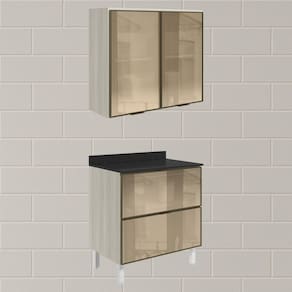 Modelo: Armario Aereo e Balcao em Vidro 2P 2G 80 cm MDF Kali Nicioli