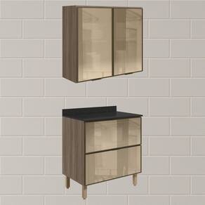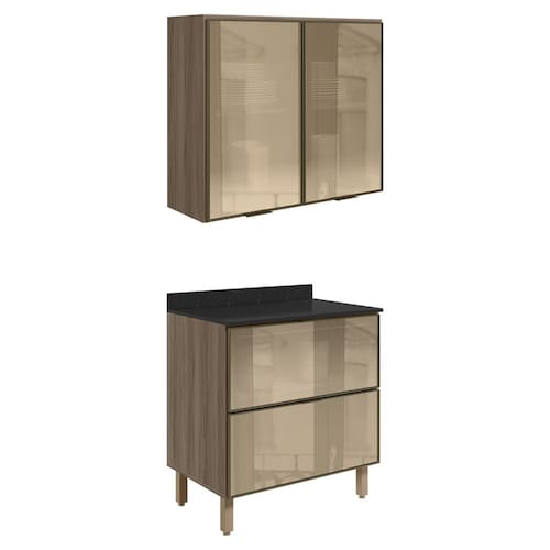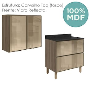 Modelo: Armario Aereo e Balcao em Vidro 2P 2G 80 cm MDF Kali Nicioli