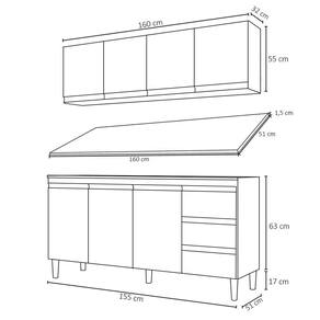 Conteúdo da Embalagem: 1 Armário aéreo, 1 Balcão, 1 Tampo.