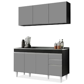 Quanto ao acabamento e estrutura também não há o que questionar, porque são fabricados em MDP 15mm com acabamento BP e os puxadores em alumínio modelo cava dão um toque de modernidade. Para completar, o tampo de pia em inox agrega ainda mais utilidade, pois você terá um espaço ideal para o preparo das refeições, além da cuba central ser ampla e acompanhar a válvula com ralo que servirá de peneira para resíduos, evitando assim, eventuais entupimentos no encanamento da pia.