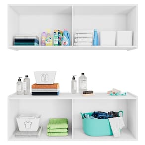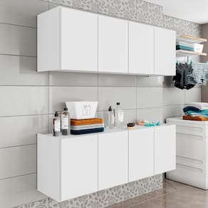 Armário Aéreo e Balcão Para Lavanderia 118cm Monna Branco Z34 - Mpozenato