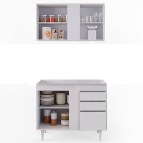Conteúdo da Embalagem: 1 Armário Aéreo, 1 Balcão.