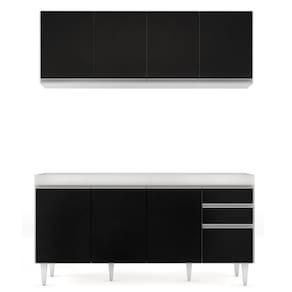 Cozinha, por onde começar? Sem preocupação, vem que a gente te ajuda a ter o ambiente moderno e funcional na medida certa! A começar pelos itens essenciais como obalcão para pia? Sim, o modelo Arkansas Branco/Preto da Lumil Móveis é uma ótima alternativa por 4 portas com puxador em perfil metálico contendo amplo espaço interno e 2 gavetas para seus talheres! Ou seja, elementos que fazem toda a diferença no dia a dia. E também o modeloArmário Aéreo Nevada que possui 4 portas de puxadores em perfil alumínio e ainda conta com 1 prateleira interna oferecendo espaço e organização Ah, e tudo em MDP com acabamento em pintura BP e pés em PVC para sustentação do móvel!!