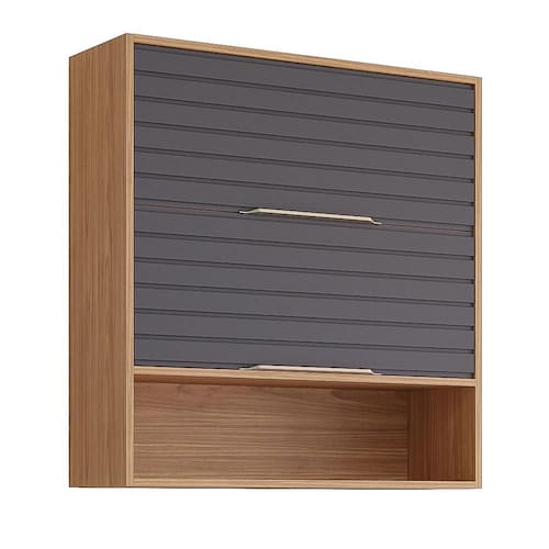 Armário Aéreo Esplêndida 80cm 2 Portas Basculantes com Nicho - MGM Eleve a organização e o estilo da sua cozinha com o Armário Aéreo Esplêndida 80cm. Feito com estrutura em MDF e pintura UV, ele combina durabilidade com um acabamento sofisticado. As duas portas basculantes, equipadas com dobradiças slow motion e pistão a gás, garantem um movimento suave e seguro. O detalhe ripado embutido nas portas adiciona um toque de modernidade, enquanto os puxadores em ABS complementam o design funcional. Com prateleira interna e nicho inferior, este armário oferece amplo espaço interno para manter seus utensílios sempre à mão e bem organizados.