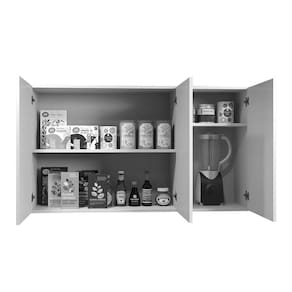Especificações Técnicas: Material da estrutura: MDP Acabamento: Pintura U.V Brilhante Número de Porta: 3 Número de Gaveta: Não Possui Número de Prateleira: 2 Material do puxador: Plástico Pés: Suspenso Material da corrediça: Não Possui Material da dobradiça: Metálica Tipo de porta: Bater. Necessita montagem: Sim Peso máximo que suporta: 30kg