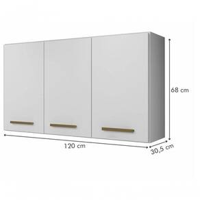 O(a) Armário Aéreo Cozinha Etios 3 Portas Branco - Kaiki Móveis é produzido em MDP na escala de brilho Semi-Brilho, e possui um grau de dificuldade de montagem: Médio.