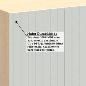 Material: Corpo em MDF 15mm e frontal em MDF 15mm com acabamento em Pintura PET, proporcionando maior durabilidade e resistencia.