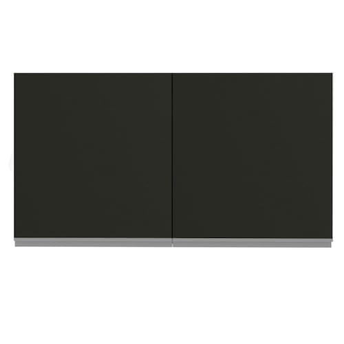 - Duas portas convencionais com puxadores em alumínio e dobradiças metálicas