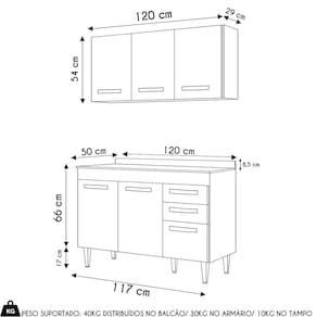 Conteúdo da Embalagem: 1 Balcão, 1 Tampo, 1 Armário Aéreo.