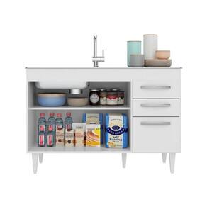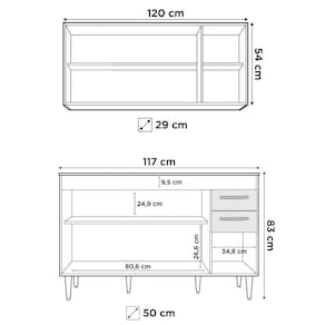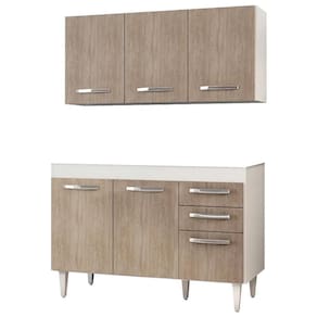 O armário conta com 3 portas que protegem o compartimento interno com 1 prateleira; já o balcão gabinete para pia conta com 3 portas e 2 gavetas, ou seja, bastante espaço para manter tudo no lugar e deixar a sua cozinha mais agradável.