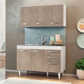 Com cozinhas cada vez menores, é preciso estar atento na hora de escolher o móvel que vai compor o ambiente, afinal, deve ser compacto e funcional, assim como o Armário Aéreo Honduras e o Balcão de Pia Suécia, da Lumil Móveis. Com 120cm cada, esse jogo, apesar de compacto, é excelente para organizar seus utensílios, panelas, louças e mantimentos.