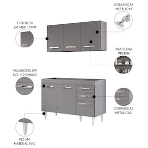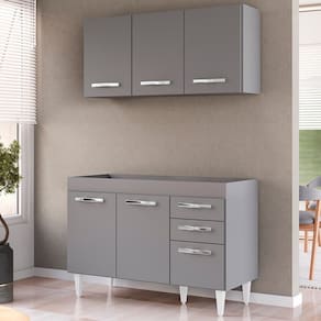 É preciso estar atento na hora de escolher o móvel que vai compor o ambiente, afinal com cozinhas cada vez menores ele deve ser compacto e funcional, assim como o Armário Aéreo Honduras e Balcão Gabinete sem Tampo 120cm Suécia Cinza, da Lumil.