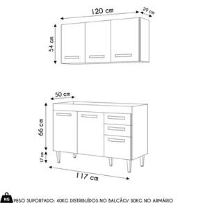 Conteúdo da Embalagem: 1 Balcão, 1 Armário Aéreo.