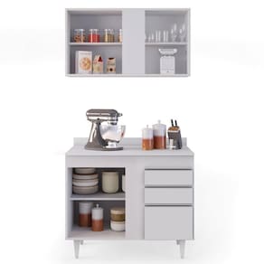 Conteúdo da Embalagem: 1 Armário Aéreo, 1 Balcão, 1 Tampo.