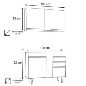 Dimensões dos Produtos (Largura x Altura x Profundidade): Armário Aéreo: 100 x 54 x 29 cm.
