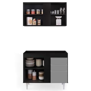 Se tem um cômodo onde precisamos de toda a funcionalidade possível, com certeza se trata da cozinha, não é mesmo? Afinal, é onde podemos preparar as refeições do dia a dia. O modelo Armário Aéreo Indiana possui 2 portas de puxadores em perfil alumínio e ainda conta com 1 prateleira interna oferecendo maior organização. Já o Balcão Luziania Preto/Cinza não acompanha tampo, possui 2 portas, 2 gavetas de puxadores em perfil alumínio e ainda conta com 1 prateleira interna! Além disso, estrutura em MDP com acabamento em pintura BP fazem deles complementos imperdíveis para sua casa!!