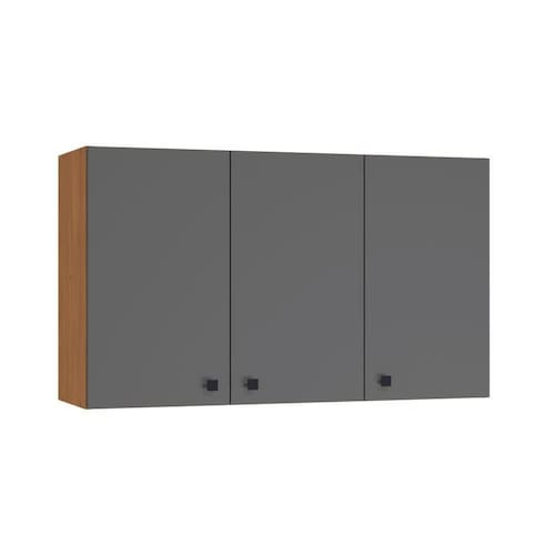Acabamento: Pintura Touch | Cor: Canela/Cinza Sagrado | Dobradiça: Com Amortecimento | Garantia: 3 meses para defeito de fabricação | Matéria-prima: MDP / MDP BP | Peso suportado por cada prateleira: 7 kg | Puxadores: Metálicos | Quantidade de portas: 3 | Quantidade de prateleiras: 2 | Sistema de montagem: Parafuso Philips / Parafuso Philips e Minifix | Tipo de porta: Bater | Materiais do corpo: MDP | Inclui manual de montagem: Sim | Tipo de móveis de cozinha: Armário | Requer montagem: Sim