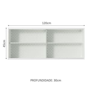 - Um (1) Armário Aéreo com 50 cm de altura x 120 cm de largura x 30 cm de profundidade com duas (2) portas em vidro e quatro (4) nichos internos.