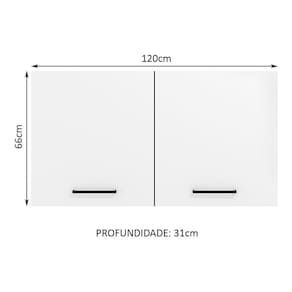 - Um (1) Armário Aéreo de 66 cm de altura x 120 cm de largura x 31 cm de profundidade com duas (2) portas e duas (2) prateleiras internas