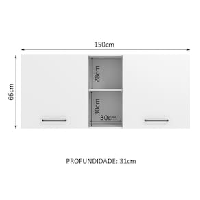 Possui duas portas e dois nichos abertos centrais. Com largura de 150 cm, é a opção perfeita para organizar todos os utensílios, louças e mantimentos da sua cozinha.