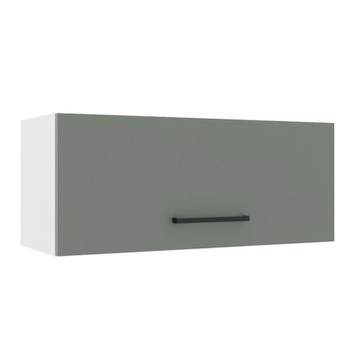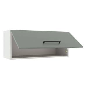 Este Armário Aéreo conta com uma porta basculante com puxador de alça em alumínio. Além disso, a porta possui dobradiças metálicas com amortecimento que proporcionam um fechamento suave e pistão a gás que a mantém suspensa.