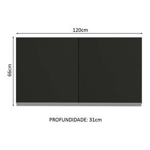 Itens inclusos: - Um (1) Armário Aéreo de 66 cm de altura x 120 cm de largura x 31 cm de profundidade com duas (2) portas e duas (2) prateleiras internas.