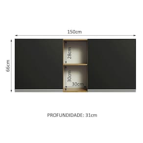 Possui duas portas e dois nichos abertos centrais. Com largura de 150 cm, é a opção perfeita para organizar todos os utensílios, louças e mantimentos da sua cozinha.