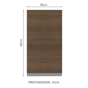 - Um (1) Armário Aéreo com 66 cm de altura x 35 cm de largura x 31 cm de profundidade com uma (1) porta e uma (1) prateleira interna.