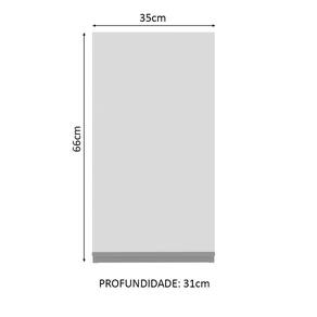 - Um (1) Armário Aéreo com 66 cm de altura x 35 cm de largura x 31 cm de profundidade com uma (1) porta e uma (1) prateleira interna.