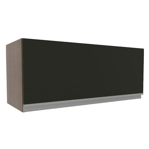 Conta com uma porta basculante com puxador em alumínio, dobradiças metálicas com amortecimento que proporciona um fechamento suave e pistão a gás que mantém a porta suspensa. O espaço interno é livre, com área par armazenamento de mantimentos e utensílios.
