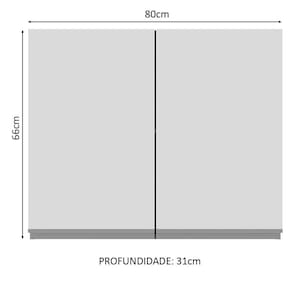 - Um (1) Armário Aéreo com 66 cm de altura x 80 cm de largura x 31 cm de profundidade com duas (2) portas e uma (1) prateleira interna.