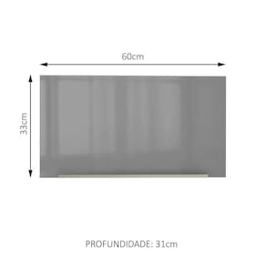 Este Armário Aéreo de 60 cm da linha Lux da Madesa possui uma porta basculante que recebe um vidro cinza aplicado, muito bonito e sofisticado. É desenvolvido com materiais de alta qualidade, como puxadores em alumínio e dobradiças metálicas.