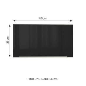 Este Armário Aéreo de 60cm da linha Lux da Madesa possui uma porta basculante que recebe um vidro preto aplicado, muito bonito e sofisticado. É desenvolvido com materiais de alta qualidade, como puxadores em alumínio e dobradiças metálicas.