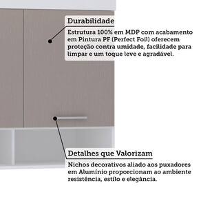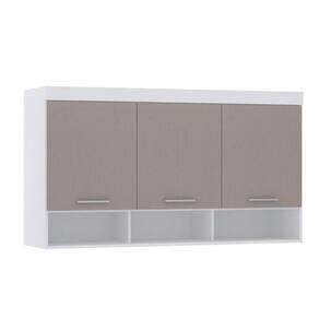 Caracteristicas: Estrutura: 100 MDP Acabamento: PF Quantidade de Portas: 3 Tipo de Dobradicas: Metalica Reforcada Tipo de Puxador: Aluminio Prata Sistema de Montagem: Cavilhas, Parafusos e Minifix Itens Inclusos: 1 Armario Aereo, Kit ferragens e Manual de Montagem. Garantia: 3 meses