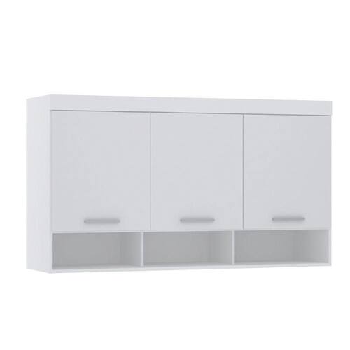 Caracteristicas: Estrutura: 100 MDP Acabamento: PF Quantidade de Portas: 3 Tipo de Dobradicas: Metalica Reforcada Tipo de Puxador: Aluminio Prata Sistema de Montagem: Cavilhas, Parafs e Minifix Itens Incls: 1 Armario Aereo, Kit ferragens e Manual de Montagem. Garantia: 3 meses