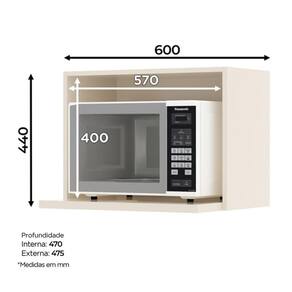 Armário Aéreo Micro-ondas Connect Off White - Móveis Henn Off White Armário Aéreo Micro-ondas Connect - Móveis Henn O Armário Aéreo Micro-ondas Connect é perfeito para complementar sua cozinha. Ele conta com amplo espaço para micro-ondas, oferecendo charme e funcionalidade ao ambiente. ESPECIFICAÇÕES: - Estrutura 100% MDF - Acabamento UV - Espaço para micro-ondas 40 x 57 x 45,5 cm