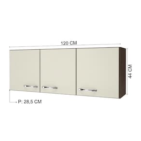 LARGURA (CM): 120 | Tipo de Móvel: Aéreo | QUANTIDADE DE PORTAS: 3 | CONTEÚDO DA EMBALAGEM: 1 Armário, Kit Ferragens e Manual de Montagem | MATERIAL: MDP | PROFUNDIDADE (CM): 28,5 | INCLUI MANUAL DE MONTAGEM: SIM | Materiais do corpo: MDP | Requer Montagem: Sim | Tipo de móveis de cozinha: Armário | ALTURA (CM): 44 | Cor: Noce/Off-White