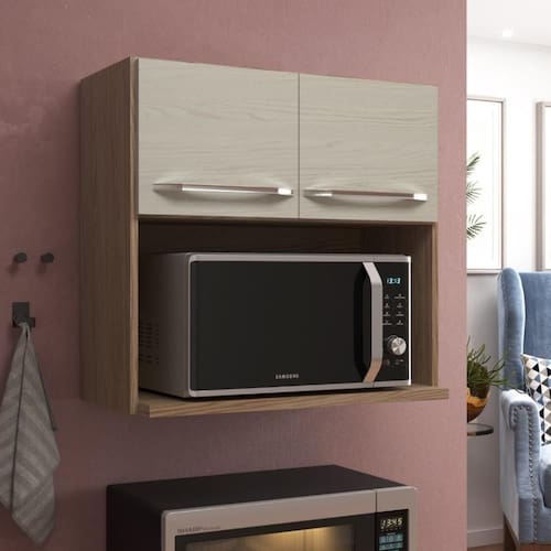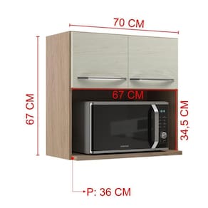 O Armário Aéreo Para Microondas Da Fidelitá foi feito para proporcionar funcionalidade aliada a praticidade no dia a dia. Com um design tradicional, ele além de acomodar o microondas em um nicho, possuí ainda espaço superior para mais organização. Montado o móvel possuí 67cm de altura x 70cm de largura x 32cm de profundidade (36cm no nicho aonde vai o microondas).