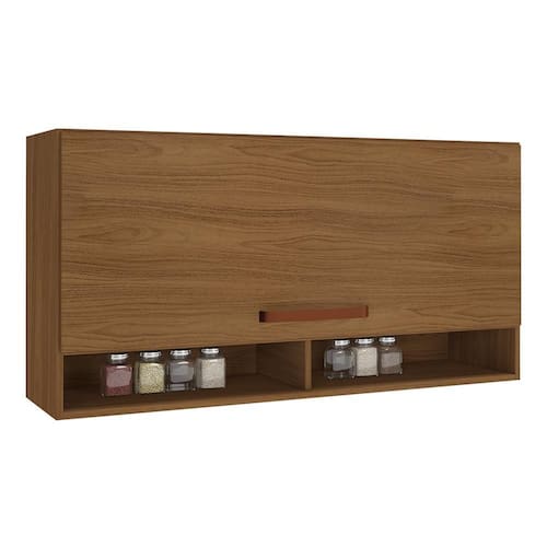 Armário Aéreo Monza 120cm 1 Porta Basculante com Nichos - Indékes Funcionalidade e estilo em um só produto. Com estrutura em MDP e pintura UV, o Armário Aéreo Monza de 120cm conta com 1 porta basculante equipada com dobradiças metálicas e pistão a gás, proporcionando abertura suave e segura. O puxador alça em ABS oferece praticidade no manuseio, enquanto os nichos externos são ideais para expor objetos decorativos ou manter itens de uso frequente sempre à mão. Com amplo espaço interno, é uma excelente escolha para complementar sua cozinha com elegância e organização.