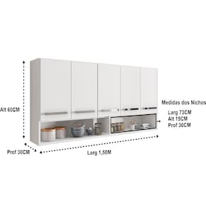 Armário Aéreo Móveis De Cozinha Multiuso 5 Portas Branco