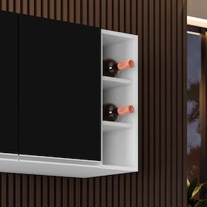 O armário aéreo de cozinha é o item que não pode faltar para deixar esse cômodo prático e funcional, pois, é onde preparamos todas as refeições do dia e precisamos de praticidade na hora de pegar nossos utensílios e mantimentos, o armário vai te ajudar a deixar tudo no devido lugar! Vamos conhecer uma pouco mais sobre esse produto incrível? O Armário Aéreo Nevada possui 4 portas com puxadores em perfil alumínio e ainda conta com 1 prateleira interna oferecendo espaço e organização. Além disso, a estrutura em MDP com acabamento em pintura BP fazem dele um móvel resistente e de alta qualidade. Já o Nicho garrafeiro é ideal para guardar objetos de decoração ou aquele vinho especial.