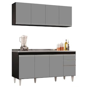 Pensando em renovar os móveis da casa? Conheça o Armário Aéreo Nevada e Balcão Gabinete com Pia 160cm Arkansas Preto/Cinza, da Lumil e encante-se!