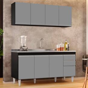 Pensando em renovar os móveis da casa? Conheça o Armário Aéreo Nevada e Balcão Gabinete com Pia 160cm Arkansas Preto/Cinza, da Lumil e encante-se!