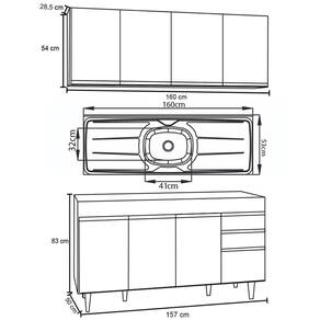 Conteúdo da Embalagem: 1 Armário aéreo, 1 Balcão, 1 Pia.