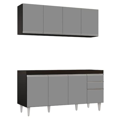 Cozinha, por onde começar? Sem preocupação, vem que a gente te ajuda a ter o ambiente moderno e funcional na medida certa! A começar pelos itens essenciais como o balcão para pia? Sim, o modelo Arkansas Preto/Cinza da Lumil Móveis é uma ótima alternativa por 4 portas com puxador em perfil metálico contendo amplo espaço interno e 2 gavetas para seus talheres! Ou seja, elementos que fazem toda a diferença no dia a dia. E também o modelo Armário Aéreo Nevada que possui 4 portas de puxadores em perfil alumínio e ainda conta com 1 prateleira interna oferecendo espaço e organização Ah, e tudo em MDP com acabamento em pintura BP e pés em PVC para sustentação do móvel!!