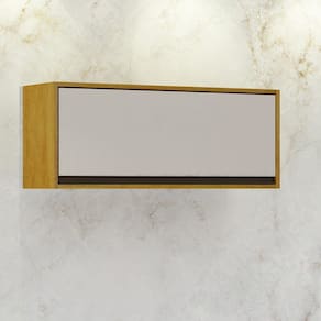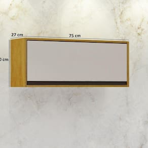 Armário Geladeira 1 Porta Eduarda, possui puxador em alumínio bronze, pistão a gás. Estrutura de MDP 15mm e Frente MDF 15mm. Medidas Altura: 30cm Largura: 75cm Comprimento: 27cm Peso: 8,3kg Material: MDP
