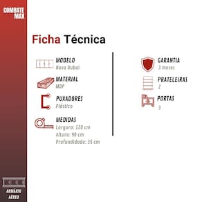 Altura: 90 cm Largura: 120 cm Profundidade: 35 cm Peso: 33,30 kg