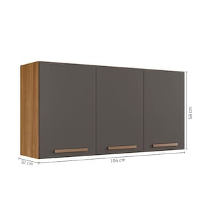 O armário Aéreo Ônix é um produto prático e funcional, perfeito para guardar seus utensílios domésticos, deixando sua cozinha muito mais organizada, proporcionando maior comodidade e praticidade. Possui uma porta com pistão e nicho, bom gosto e qualidade com um toque de clareza.\nEspecifações do Produto Montado: Altura: 58 Cm Largura: 104 Cm Profundidade: 32 Cm Peso: 22,2 Kg\nDetalhes do Produto: Garantia: 3 Meses Material da estrutura: MDP/MDF Número de Portas: 03 Tipo de Porta: Bater Dobradiças Metálicas Possui Prateleiras: Sim 02\nObservações: Não oferecemos serviço de montagem, mas todos os produtos possuem manual de montagem com o passo a passo. Recomendamos contratar um profissional de montagem. Pode existir alguma diferença de tonalidade entre a foto e o produto, devido ao tratamento de imagens e à calibração de cores do monitor.